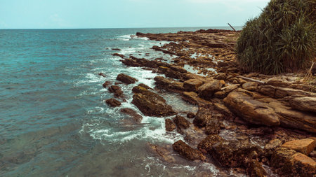 Beautiful view of the sea and the coast of the island of Sri Lanka