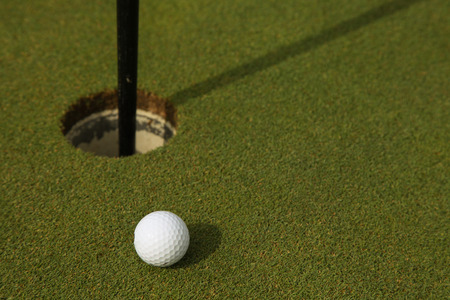 Golf ball is close to the hole. A successful and accurate shot