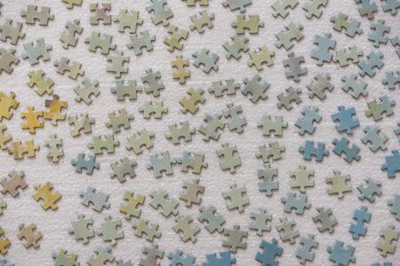 A set of puzzles, the process of collecting in a large pattern. Teamwork and problem solving, concept.