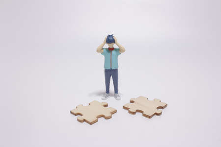 a Worried figure face the not match puzzle