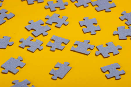 Many elements of a puzzle on yellow background