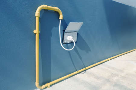 Pipe of electricity line on cement wall