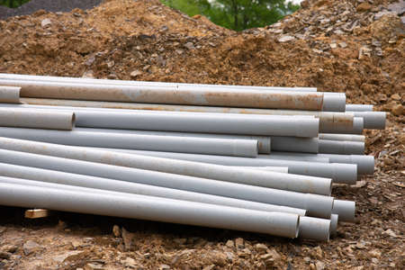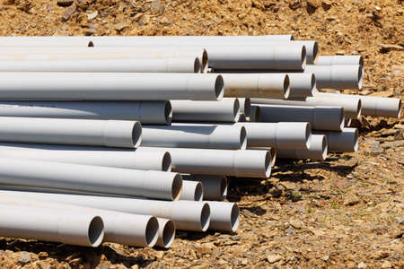 new water pipes on site construction supply plastic stack plumber