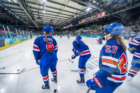 MILAN, Lombardy ITA - February 07, 2026: forward Hannah Bilka #23 of Team United States warms up before playing against Team Finland in the Preliminary Round Group B at the Milano Ice Park In Rho in MILAN, Italy during the 2026 Milano Cortina Winter Oly