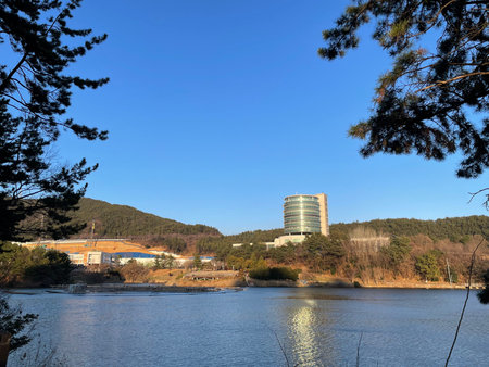 Panoramic view of Miryang city from Moonlight Ssamji park at autumn in Miryang, Korea