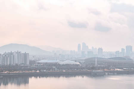The beautiful view to Seoul city and Han-gang river from the air, South Korea