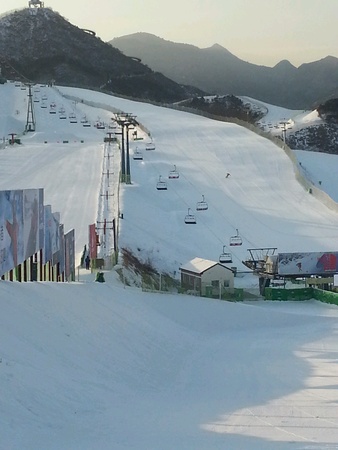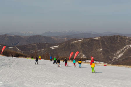 Zhangjiakou, Hebei Province / China - February 13, 2015: Genting Olympic resort, snowy mountain resort which will host skiing and snowboarding events for Beijing Winter Olympics 2022