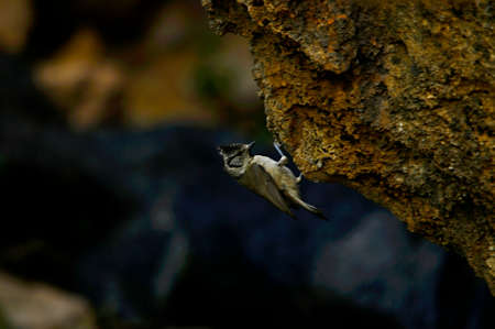 Little mouse sitting on a branch in the forest. Wildlife scene from nature.