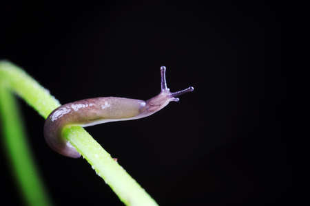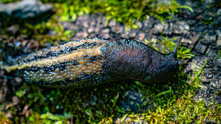 large slug in the garden, in nature, close-up macro, garden pests, crop eaters