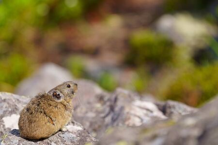 An ice rat - Otomys sloggetti - feeding in alpine environment, Drakensberg mountains, South Africa
