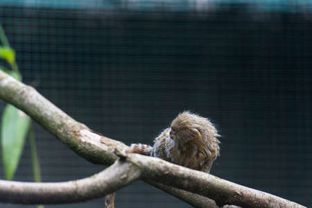 Dwarf Marmoset - Callithrix pygmaea - A small brown monkey in captivity.