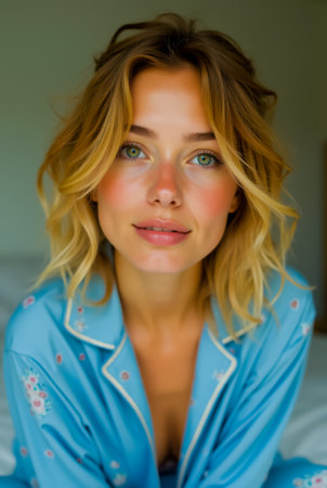 beautiful woman in pink Pajamas fashion bedroom portrait