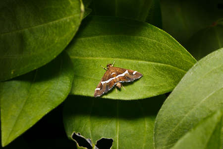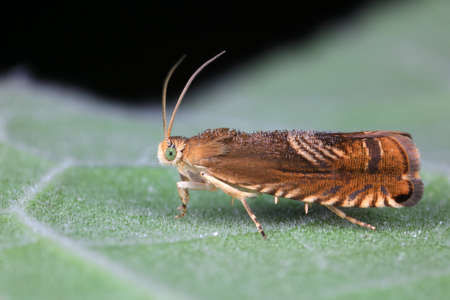 Small Adult Moth of the Order Lepidoptera on a leaf