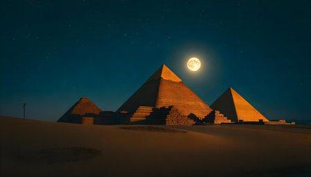Magnificent pyramid perched on mountain summit gleaming under the mesmerizing moonlight