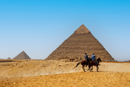 Famous Egyptian Pyramids of Giza. Landscape in Egypt. Pyramid in desert. Africa. Wonder of the World