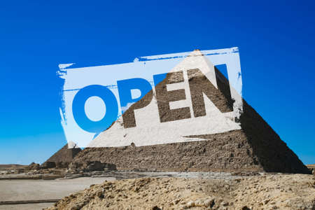 Concept city Open after quarantine, COVID-19. The Pyramid of Khufu and the Pyramid of Khafre. Giza, Egypt