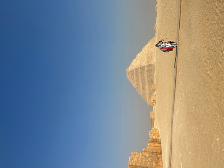 Asian tourist travel to Egypt Red Pyramid in saqqara complex architecture dream trip destination