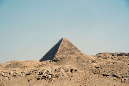 Ancient pyramid at the desert, blue sky, egyptian culture.