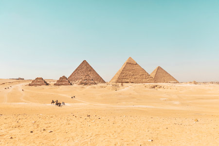 Majestic Pyramids of Giza Under Clear Skies A Stunning View of Ancient Egyptian Wonders
