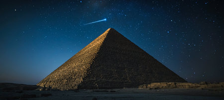 Great Pyramid of Egypt at Night with Shooting Star in the Sky