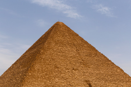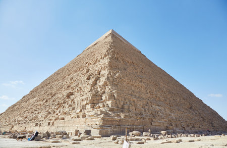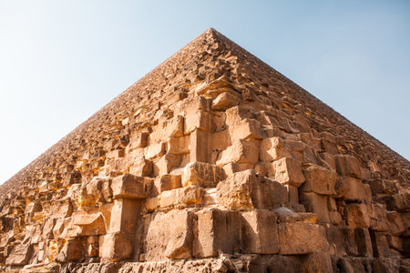 Bottom up view of the Great Pyramid of Giza on a clear sunny day