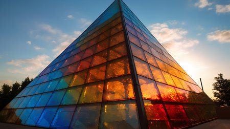3d illustration of a pyramid made of colored glass on a dark background
