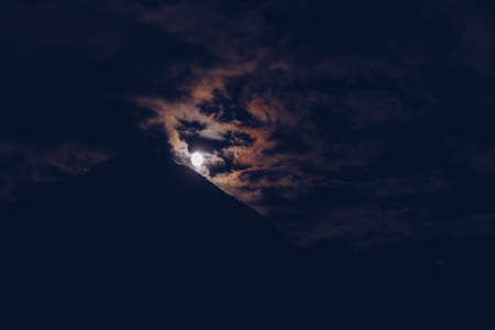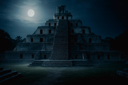 Ancient Mayan pyramid at night in full moon light, Yucatan, Mexico