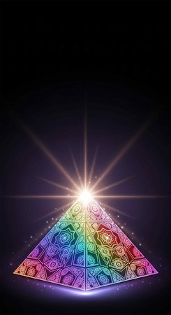 Abstract pyramid with rays of light on a dark background. Vector illustration