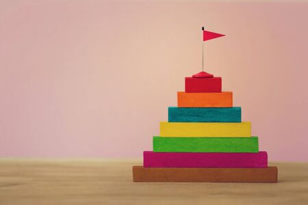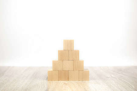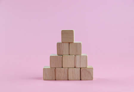 Cube wooden block toy stacked in pyramid shape without graphics for Business design concept and activity for children play and practices foundation stage.