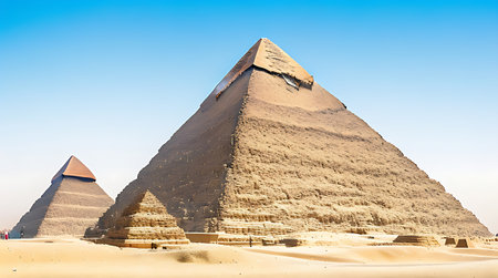 Majestic Pyramids of Giza Under Clear Skies A Stunning View of Ancient Egyptian Wonders