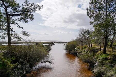Ares lake city river in Arcachon Bay Gironde department France