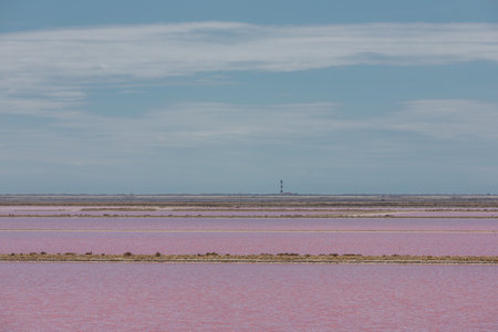 Saltwork in the salt fields in the camargue, the rhone delta in France, Europe