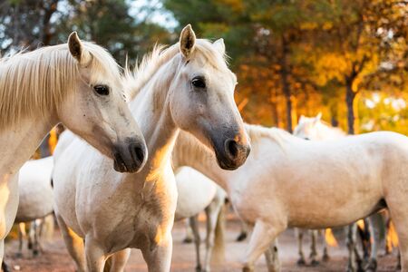 Herd of the white horses in Camargue, France.