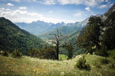 Beautiful Pyrenees mountain landscape from Spain, Catalonia. Tourist walking on the road