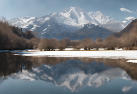 Beautiful landscape view with snowed up mountains in Triglav national park in Slovenia. Traveling slovenian Alps