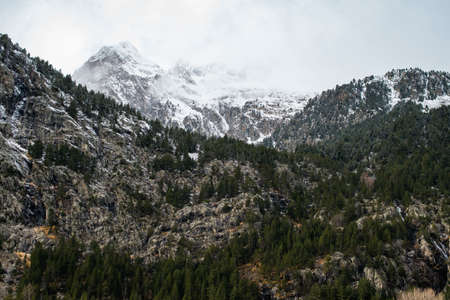 Snowy peaks in Canfranc Valley, Pyrenees, Huesca, Aragon, Spain.