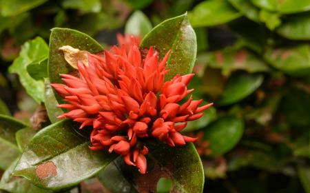 Ixora flower blooming in the garden with nature background.