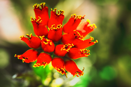 Red flowers in bokeh garden background, Close up & Macro shot, Selective focus, Abstract graphic design