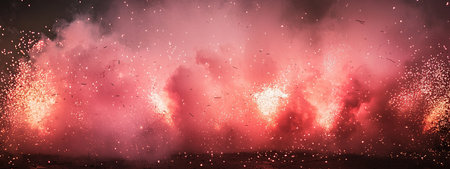 Vibrant particle explosions create stunning effects in muddy pink hues with embers