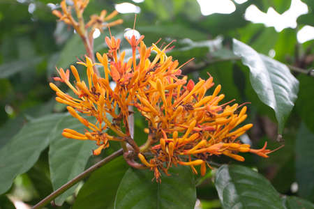 Beautiful orange flower in the garden, Thailand. Selective focus.