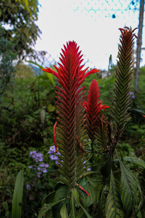 Closeup of a cockscomb flower (Celosia Cristata) in a garden