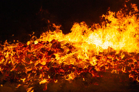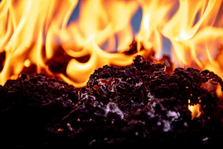 Fire by night. Flames and embers. Hell and inferno