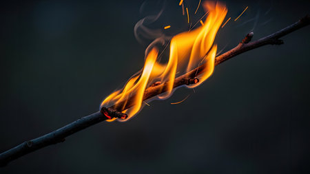 A powerful image of flames consuming a stack of logs, with sparks flying and smoke billowing upwards, illustrating the raw energy of fire in action