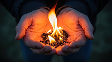 Hand Touching Flames from Burning Financial Documents. AI generated