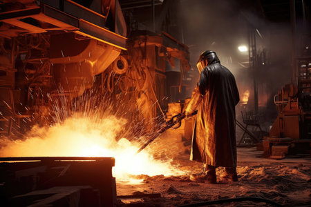 Foundry people heat liquid industrial welder factory steel metallurgy furnace metal iron