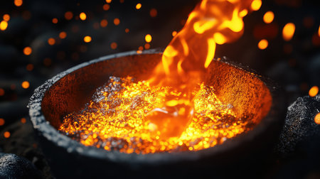A skilled artisan holds a glowing piece of molten metal, surrounded by smoke and warmth, embodying the passion and creativity associated with metalwork.