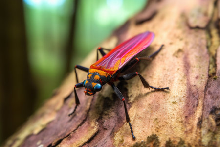 A Stunning Vibrant Red Beetle Perched on a Stick in its Natural Habitat Among Nature