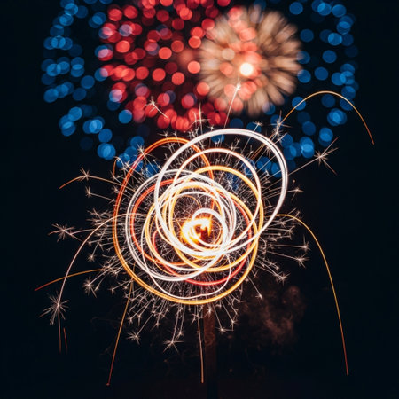 Vibrant sparkle effects on a dark background, perfectly capturing the essence of New Years celebrations.