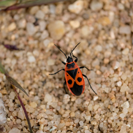 A closeup selective focus shot of a firebug on the stone surface - perfect for background