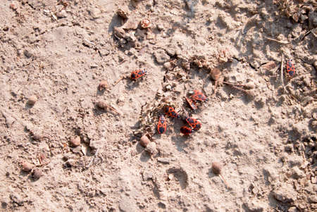 colony of red beetles came out the spring sunbathing at the foot an old oak